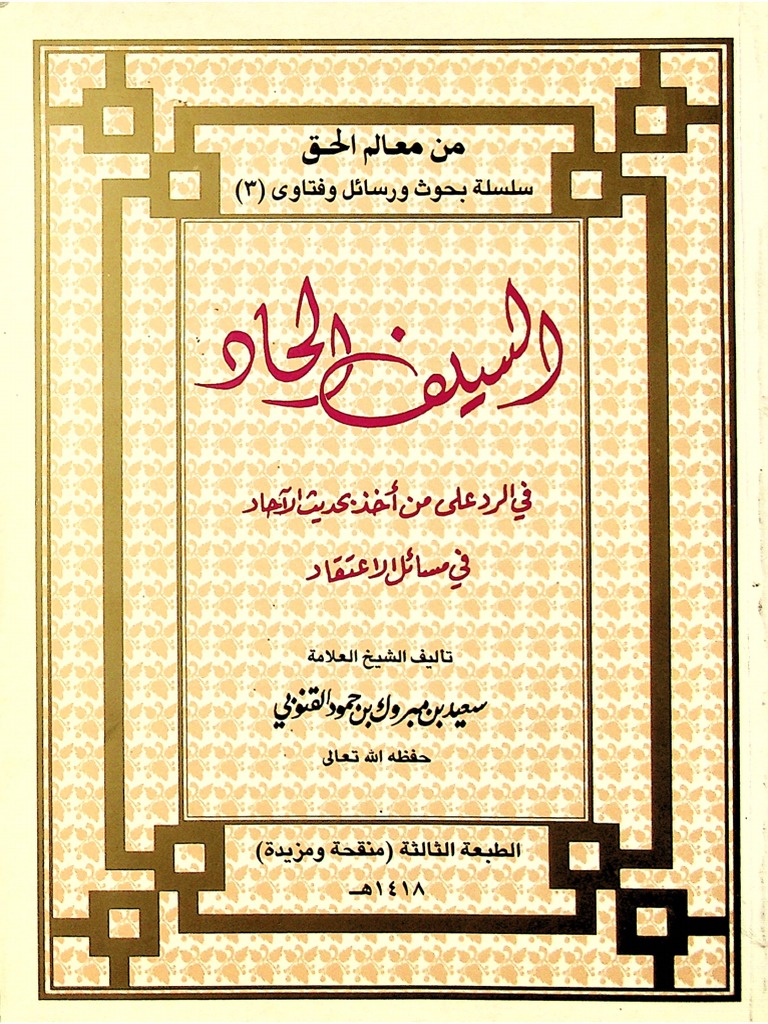 السيف الحاد في الرد على من أخذ بحديث الآحاد في مسائل الاعتقاد pdf